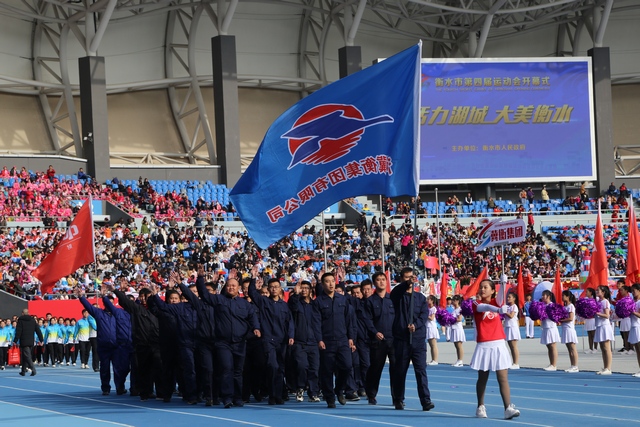 10月26日上午,以“活力湖城,大美衡水”為主題的衡水市第四屆運動會在市奧體中心體育場開幕,這次運動會是全市規(guī)模最大、水平最高、影響最廣的綜合體育賽事。市長吳曉華致辭并宣布開幕。省體育局巡視員張綽庵致辭。市領導王金剛、李洪林、鈕興輝、韓志剛、劉永軍、李建剛、崔建發(fā)、程蔚青、趙維東、馬衛(wèi)、韓克儉、蘇振武、姚會亭出席開幕式。副市長崔海霞主持開幕式。來自各縣市區(qū)、市直各部門、中省直駐衡單位、企事業(yè)單位 、各大中專院校、社會團體的70支代表隊和11個團體操展演單位,以及由各縣市區(qū)提供的13輛花車參加了開幕式。冀衡集團43名職工組成的代表隊參加了開幕式。