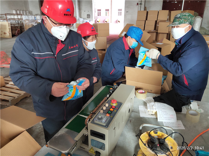 疫情爆發(fā)以來,冀衡化學(xué)公司充分發(fā)揮黨組織戰(zhàn)斗堡壘作用和黨員先鋒模范作用,全面部署、迅速行動、周密安排,嚴(yán)密防控,全體黨員在崗在位,黨員干部沖鋒在前,以黨建引領(lǐng),堅決打贏新冠肺炎疫情防控阻擊戰(zhàn),在做好公司防控工作的同時,公司全體黨員自愿組成黨員突擊隊,加班加點不計報酬,義務(wù)勞動灌裝消毒液產(chǎn)品,倒裝消毒顆粒產(chǎn)品,協(xié)助政府打好防控消毒戰(zhàn)!