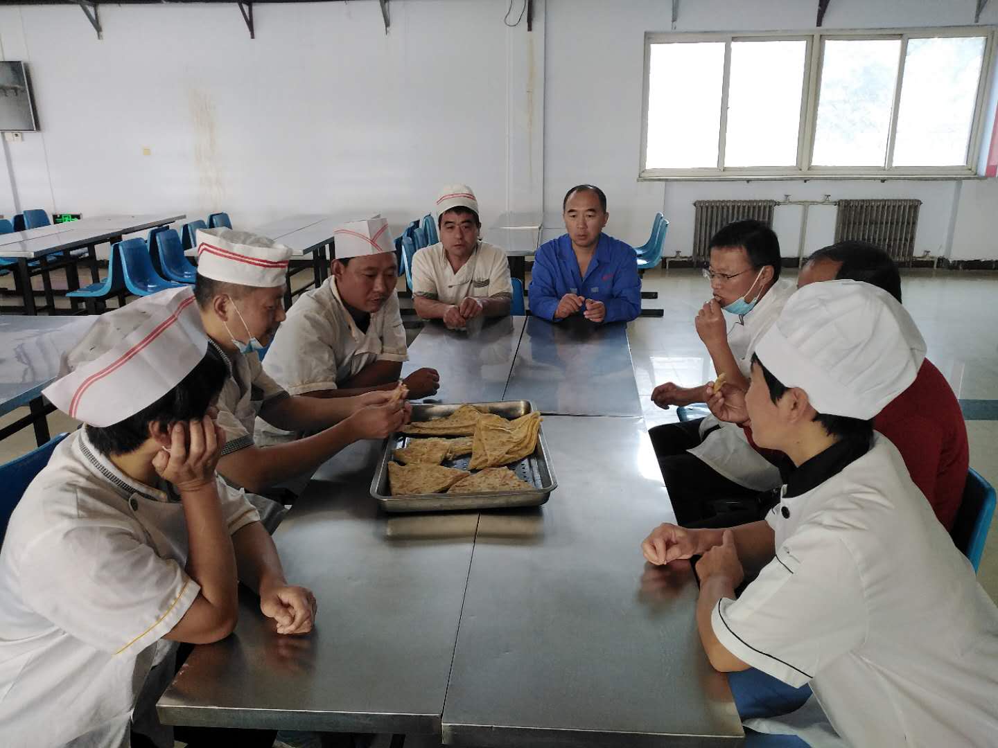 9月24日下午,由化學(xué)公司承辦集團(tuán)“廚師技術(shù)交流會(huì)”,這次交流的主題是主食的制作,來自集團(tuán)四個(gè)分子公司職工食堂的廚師圍坐一起,互相交流工作中的心得體會(huì),交流會(huì)上各位廚師現(xiàn)場(chǎng)操作,每人烙餅一張,并把自己的勞動(dòng)成果端到飯桌上,借助大家品嘗、評(píng)價(jià),互相取長(zhǎng)補(bǔ)短,交流會(huì)上各位廚師表示,集團(tuán)組織的這種形式非常好,希望以后繼續(xù)開展下去,不斷提高自己的工作技能,不斷提高飯菜質(zhì)量,更好地為職工服務(wù)。