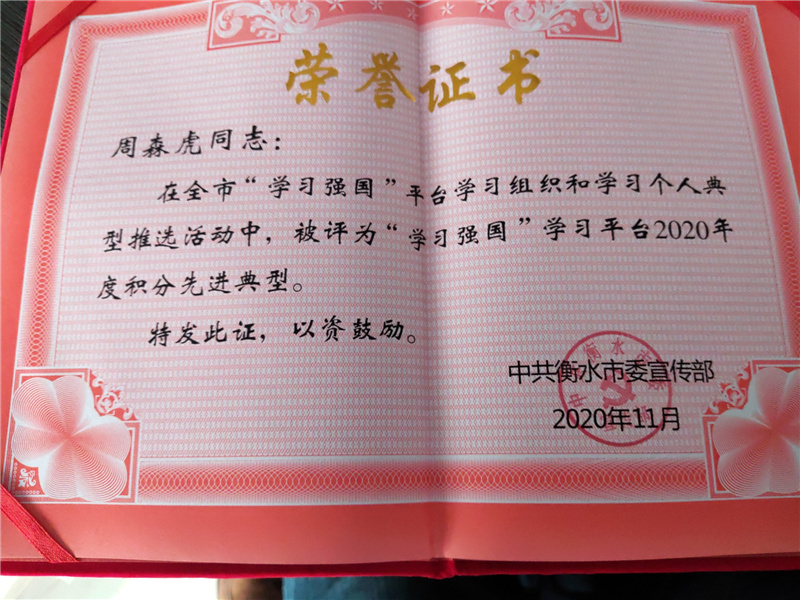 “‘學(xué)習(xí)強(qiáng)國(guó)’這個(gè)學(xué)習(xí)平臺(tái),內(nèi)容權(quán)威、內(nèi)涵豐富、特色鮮明,我覺得受益匪淺,已經(jīng)‘上癮了’!”化學(xué)公司一車間副主任周森虎表示,從剛開始的閱讀文章、觀看視頻、答題到對(duì)平臺(tái)深入了解之后的上癮、依賴,現(xiàn)在“學(xué)習(xí)強(qiáng)國(guó)”已經(jīng)成了他每天的必修科目,到目前他個(gè)人累積學(xué)分已達(dá)到32864分,被衡水市委組織部授予“學(xué)習(xí)強(qiáng)國(guó)”學(xué)習(xí)平臺(tái)2020年度積分先進(jìn)典型。